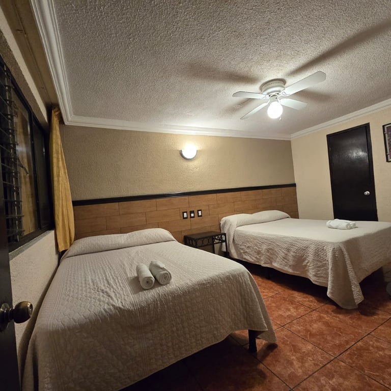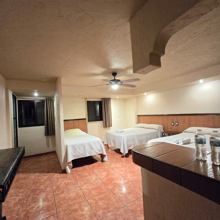 Amplias habitaciones familiares con comodidades para una estancia confortable y relajante.
